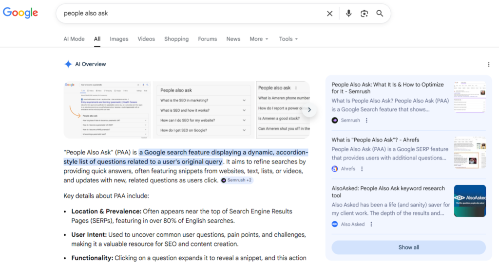 Google’s search results feature a variety of rich elements such as Knowledge Panels, featured snippets, People Also Ask sections, video carousels, and other interactive components. To secure these prominent placements, brands need to excel in using structured data, optimizing content formatting, and accurately understanding user query intent.